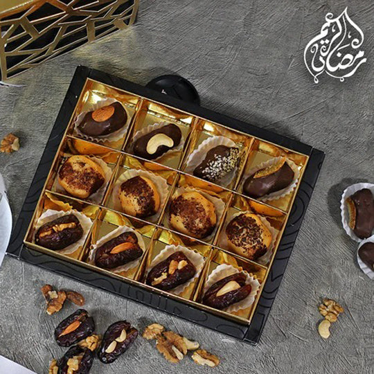 A perfect blend of dates cookies, filled dates, and coated dates. (12 Pcs Assorted Box)