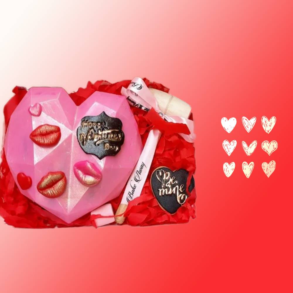 Our signature smash cake, heart shaped caked with premium white chocolate that comes with delicacies like brownie, bento cake and for the special occasion a cookie with a message for her "Be Mine"