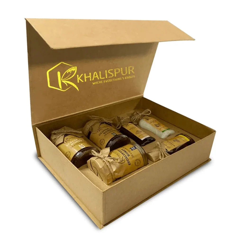 “Gold Gift Box” features a premium collection of “Cold-Pressed Oil & Raw honey” including