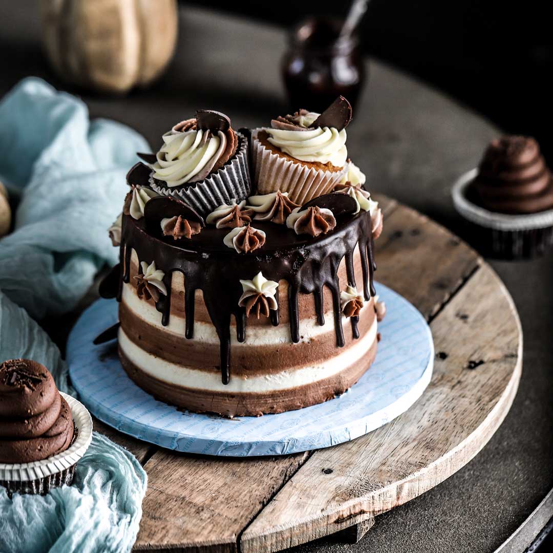 Whether it's a birthday or just a mere get-together, Overload by Aztec is just the right pick to indulge in the cakey sweetness. Double layered cake is topped with chocolate and lovely little swirls and cupcakes.