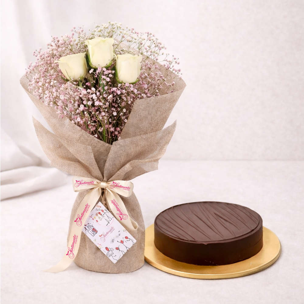 What could be more timeless than pristine white roses and a rich chocolate cake, thoughtfully brought together for moments that linger.