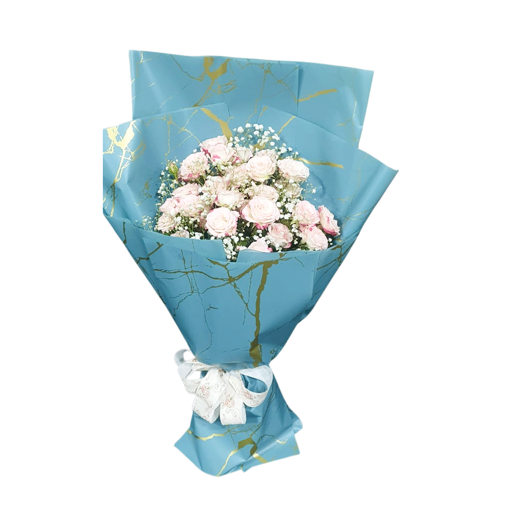 Brighten someone's day with Blush Pink Bouquet! This stunning bouquet features spray pink roses for a luxurious touch and gypsos to add delicate beauty. The marble sheet gives the bouquet a modern, contemporary style, while delightfully designed leaves bring an elevated charm. Whether you're celebrating a special day or spreading love, this bouquet will certainly do the trick! With its combination of pink-hued romance, timeless beauty, and exciting freshness, it's sure to make hearts melt and smiles bloom. So why wait? Gift your loved ones this blend of emotion, beauty, and euphoria – what could be more exciting than that? Add-ons: