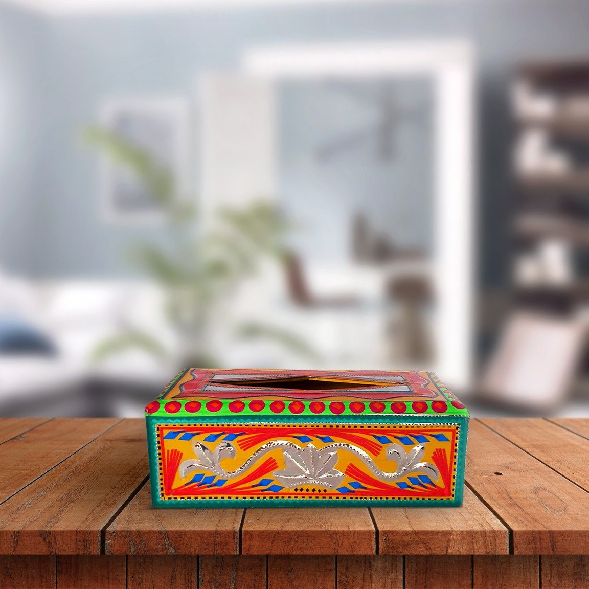 Get your hands on our unique and eye-catching Truck Art collection. This piece of art would look amazing at the center table in the drawing-room or in the dining area. The stylish crossover of the Tissue box and chamak patti art will definitely enhance the interiors. It is no ordinary tissue box cover but a piece of art waiting to be gifted to your closed one.