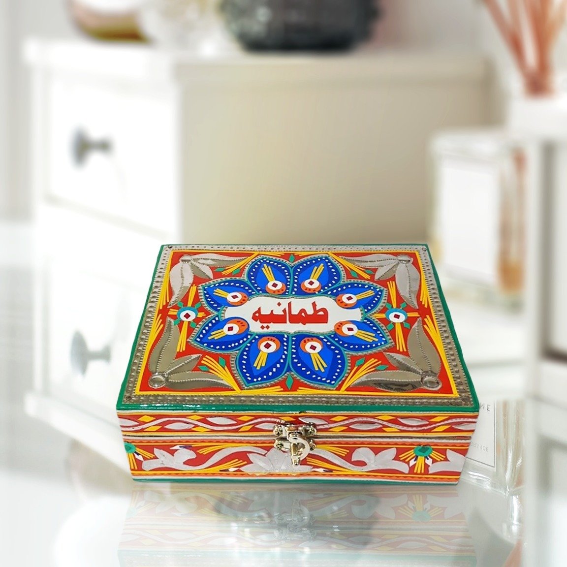 Get your hands on our unique and eye-catching Truck Art collection. This Jewellery Box is a dream come true for every woman. The shimmering Chamakpatti truck art inspired Jewellery Box is meant to last its impression for a Lifetime! It comes with an attached mirror that you can use to see how beautiful you will look with those pieces of Jewellery.