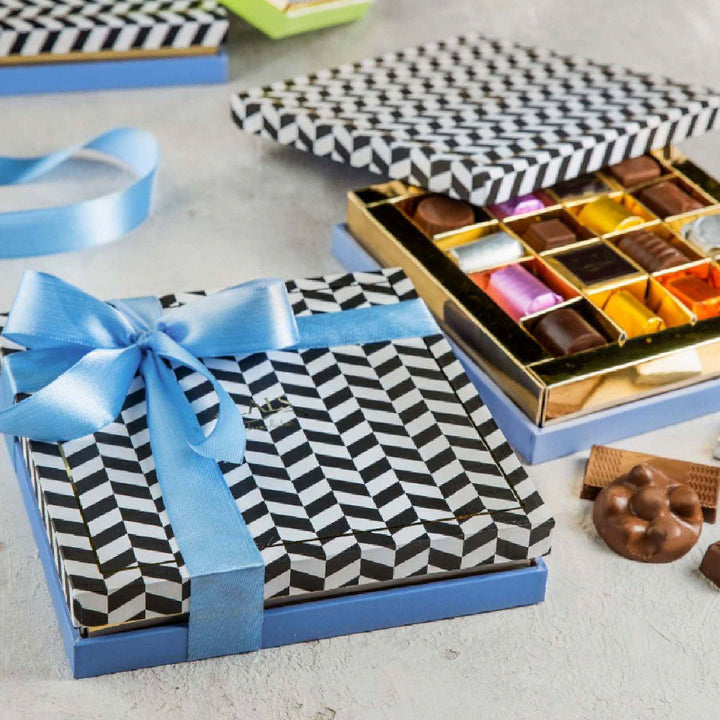 Assorted Chocolates in Periwinkle Chevron box by Lals