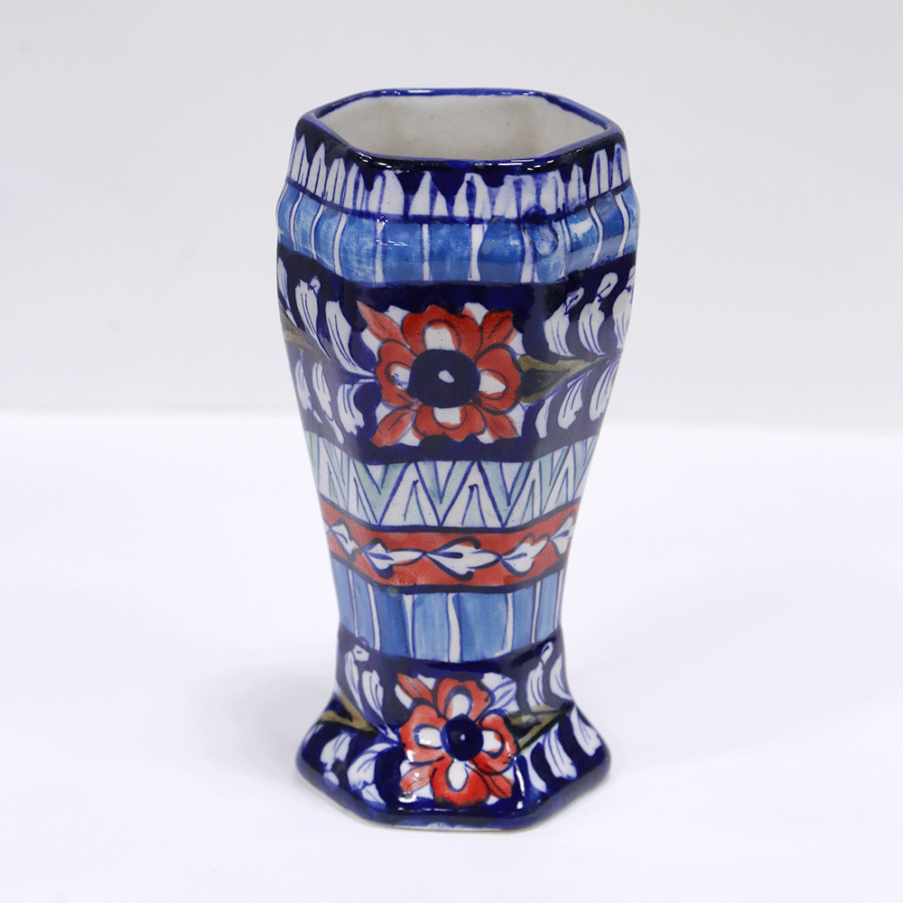 Bring the beauty of Multani pottery into your home with this exquisite vase. With traditional craftsmanship, each unique piece brings local flair and charm to any décor. Handmade from Multan, each multani pottery vase is one of a kind. It includes a free greeting card and free delivery. Note: the design and color may vary, but the shape will remain the same.