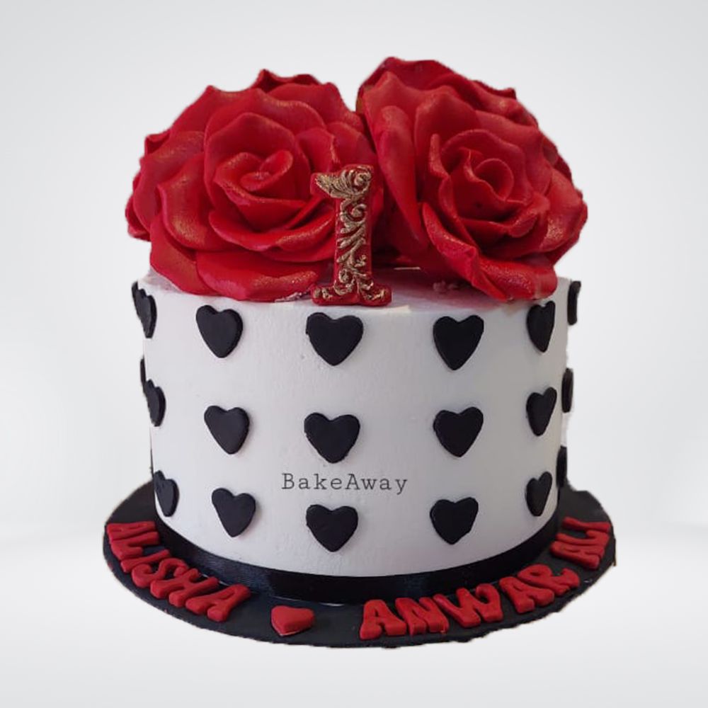 Celebrate your love and commitment with our cute Anniversary Cake, a perfect choice for anniversaries and other special occasions. Flavored with Chocolate and Vanilla Sponge and topped with beautiful fondant floral art.