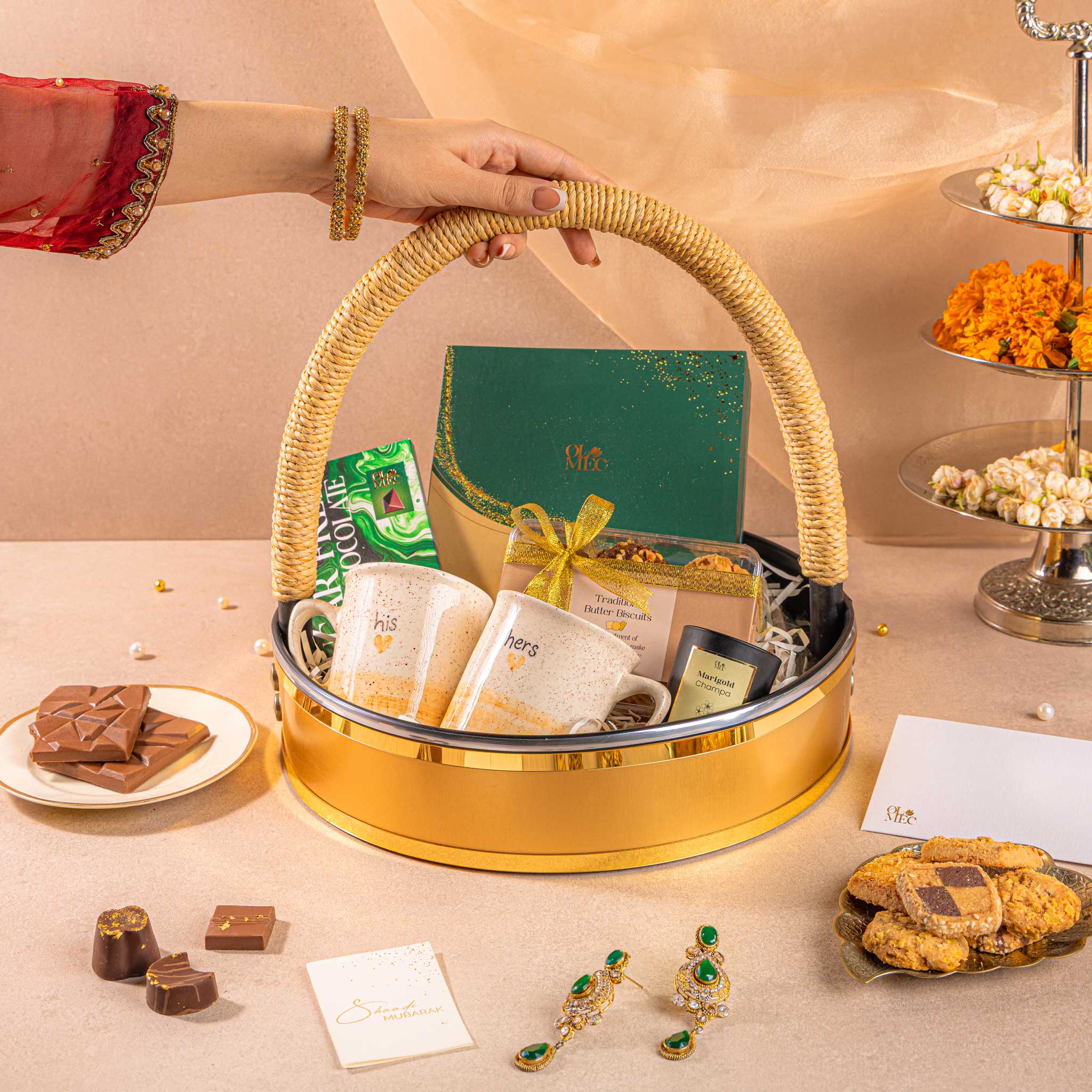 A thoughtful his & hers hamper with chocolates and keepsakes — perfect for wedding celebrations and couple gifting.