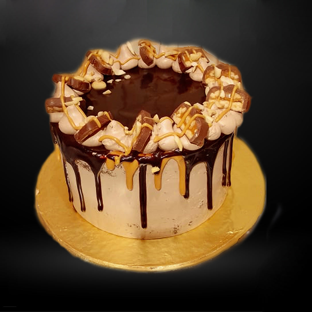 This ultimate snickers cake treat is a celebration of the iconic Snickers candy bar, packed with layers of rich chocolate cake, indulged in dense caramel filling. Serving size 2Lbs