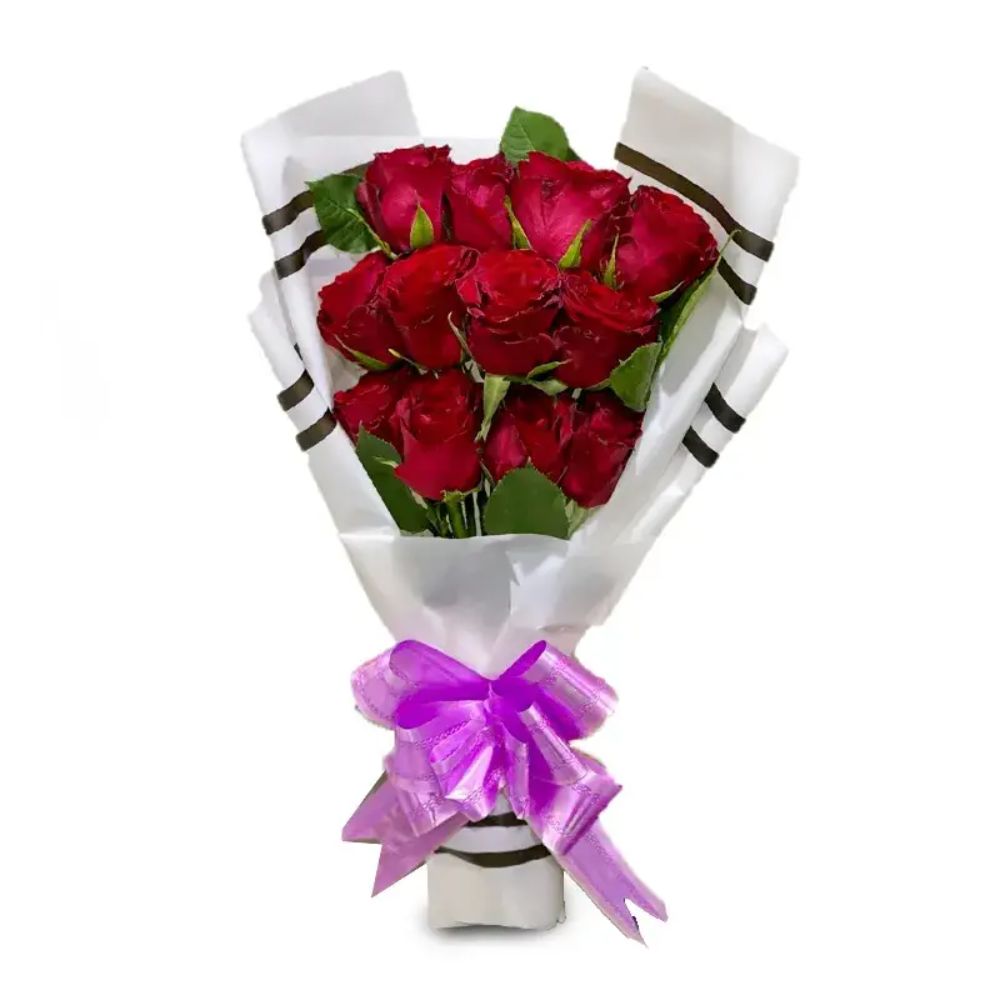 Order 12 velvety red roses bouquet online to your loved ones from Gulfflora