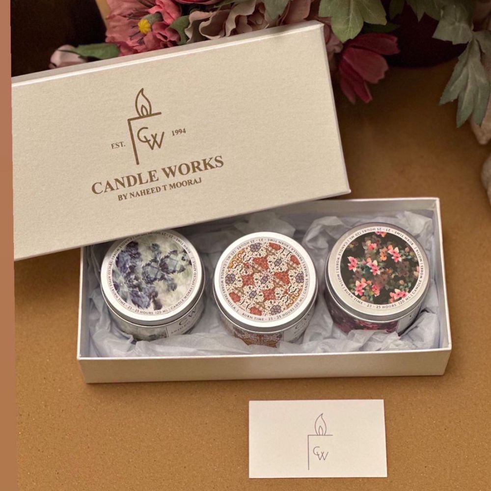 Discover a trio of captivating fragrances with this beautifully packaged candle set. Each tin features a unique scent, allowing you to create a personalized ambiance in any room. The stylish tins add a touch of elegance to your home decor.