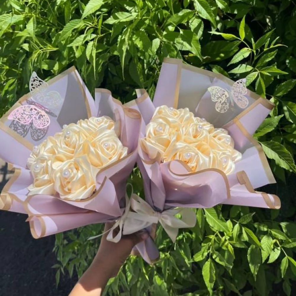 A satin silk ribbon flower is a beautifully handcrafted floral design made from luxurious satin silk ribbons. These flowers are known for their soft texture, elegant sheen, and versatility in design. Satin silk ribbon flowers can range from simple, delicate designs to more intricate and elaborate arrangements, often resembling real flowers like roses, peonies, and daisies. It consists of 10 silk flowers.