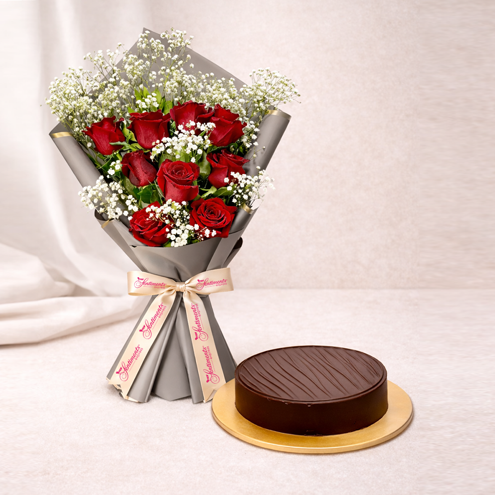Red roses chosen with care, paired with chocolate to make someone feel truly special.