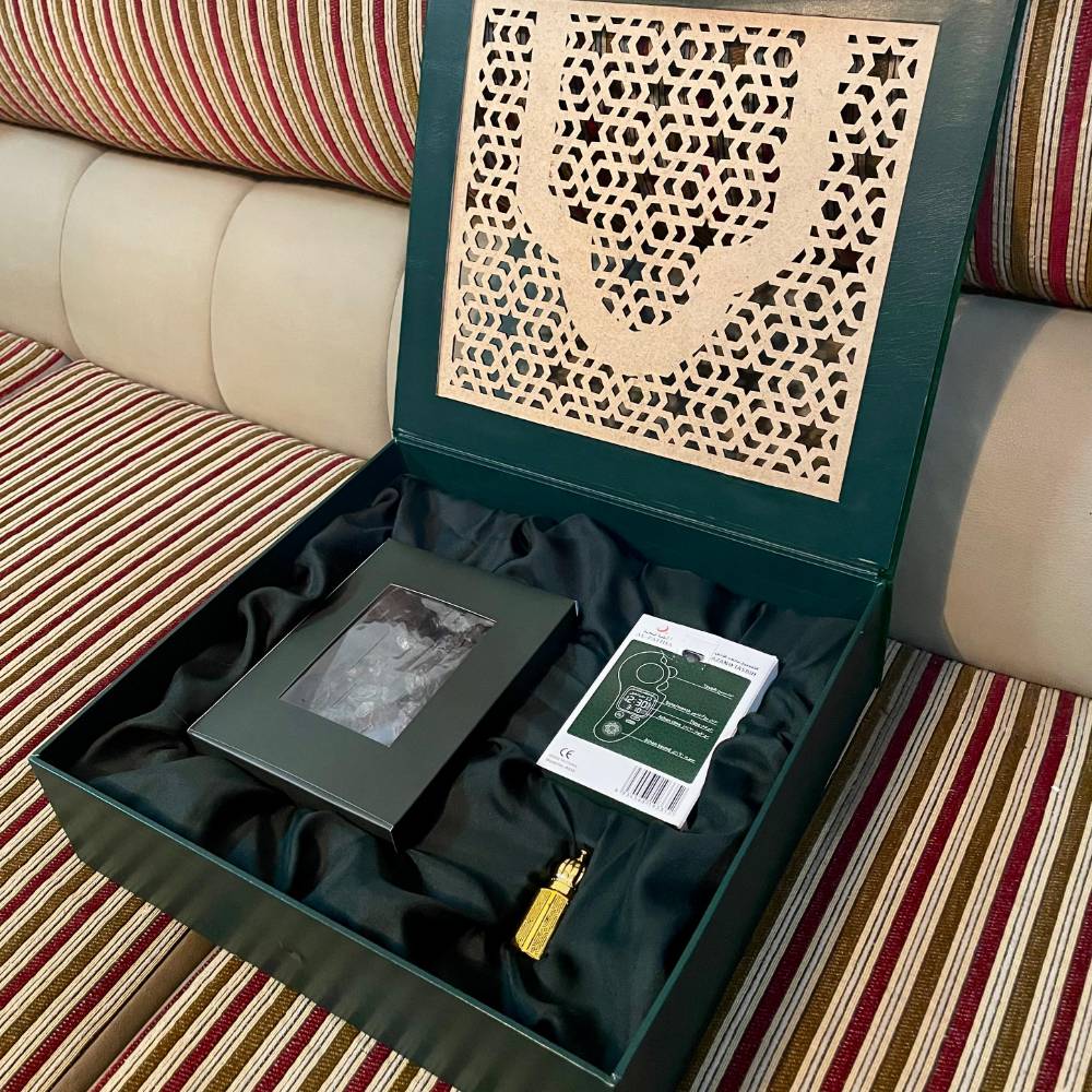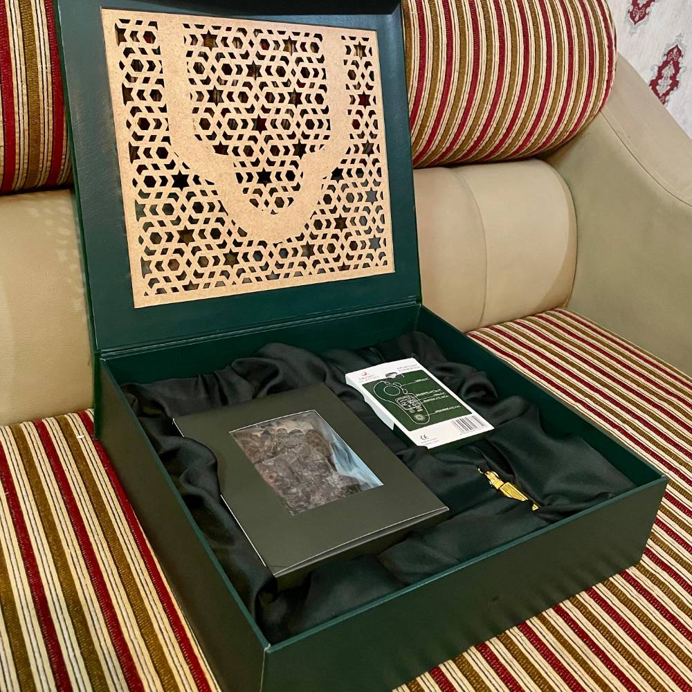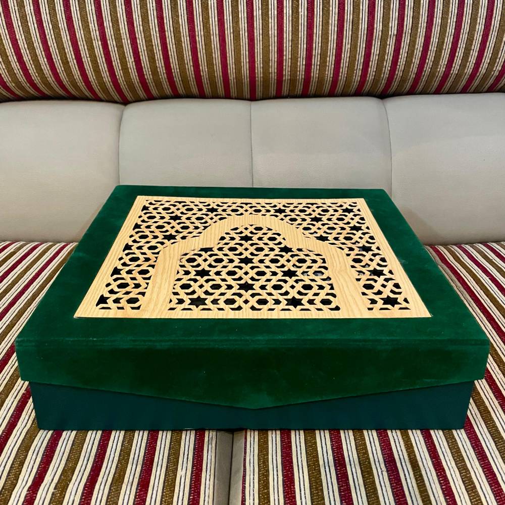 Green suede box with wooden ply lasser cutout
