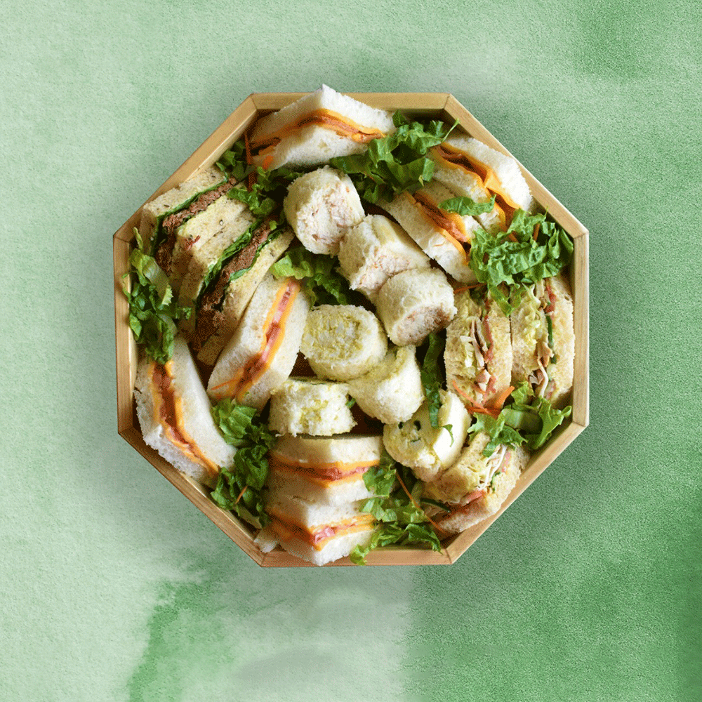 * Mini Cheese & Peperoni Sandwiches * Mini Chicken Coleslaw Sandwiches * Mini Hunter Beef Sandwiches * Egg Pinwheel Sandwiches