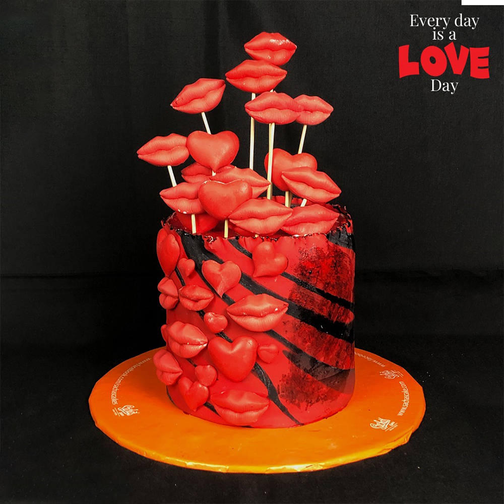 A smooth and creamy double chocolate fondant cake, customized with initials and adorned with a "kisses" theme for a personalized touch.