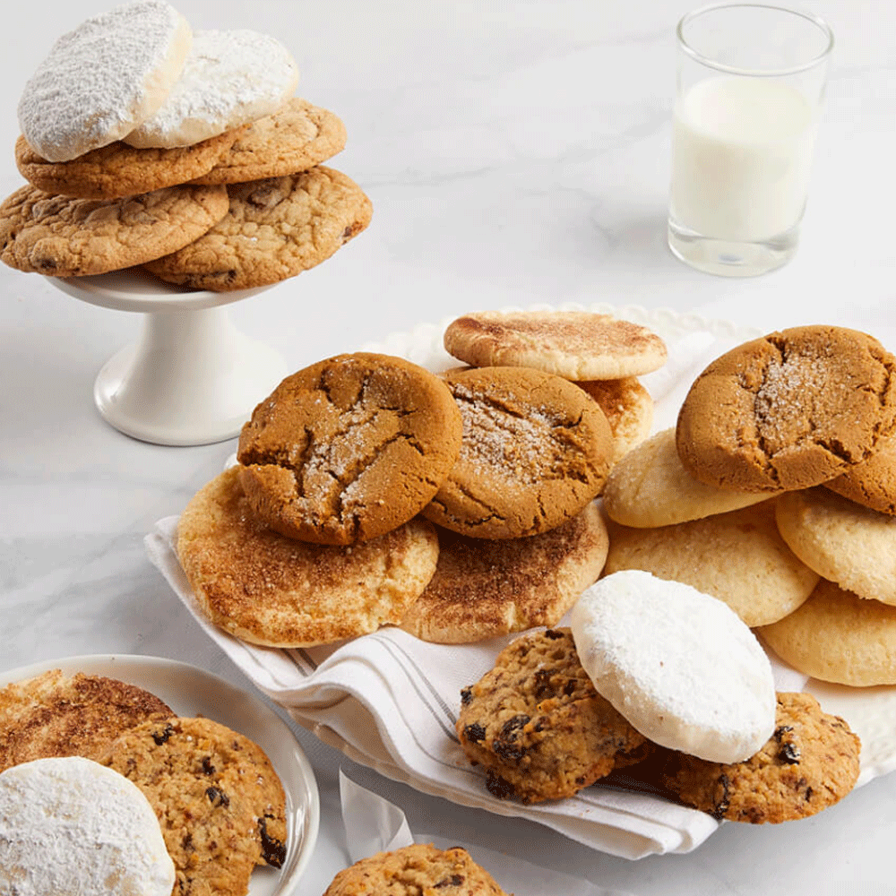 A gift box full of fun - two dozen of our tasty cookies in a variety of flavors - a great treat. We include Chocolate Chip, Oatmeal Raisin, Lemon Sugar, Ginger Molasses, Snickerdoodle and Butter Pecan cookies that are amazing and sure to wow.