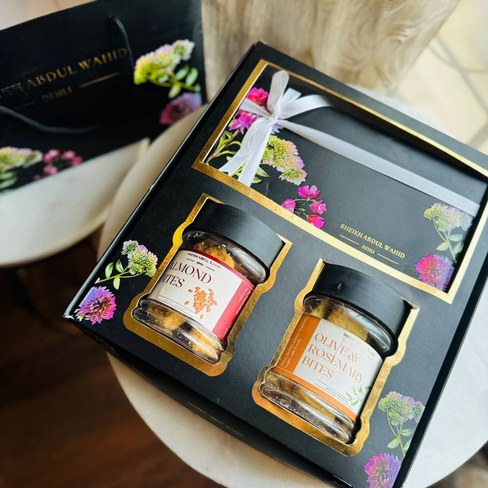 8pc Mithai, Olive Rosemary Biscuits Jar, Almond Bite Biscuits Jar.