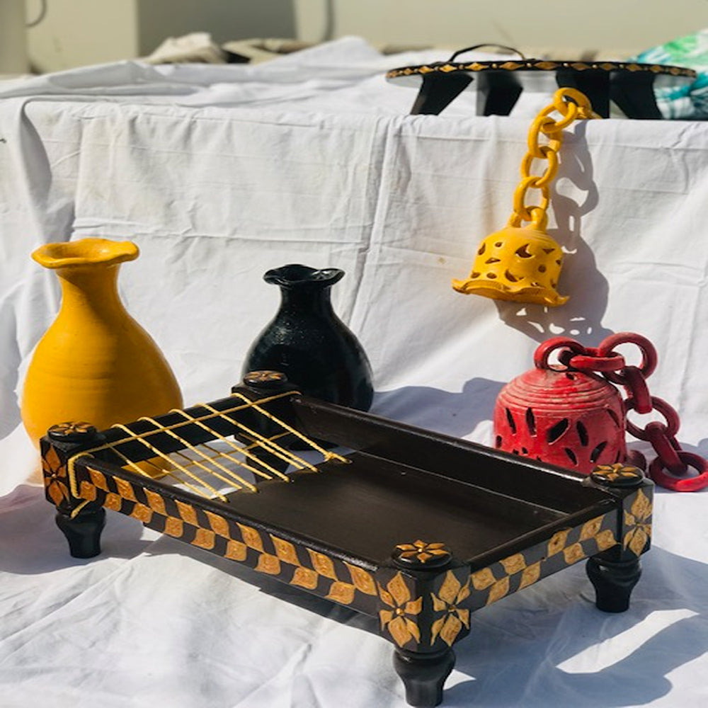 High quality wood used to make miniature of traditional bed used across South Asia to present culture through meals. Hand made metallic gold painting to reflect the desi vibe. The perfect gift for housewarming or anyone who loves to host