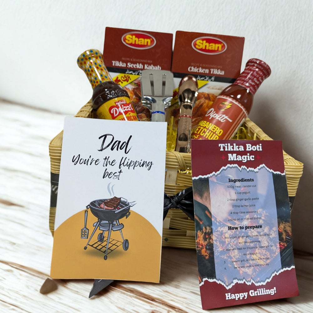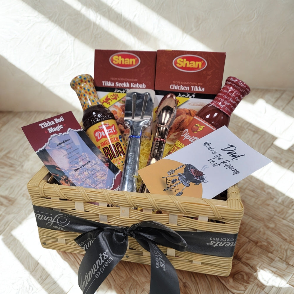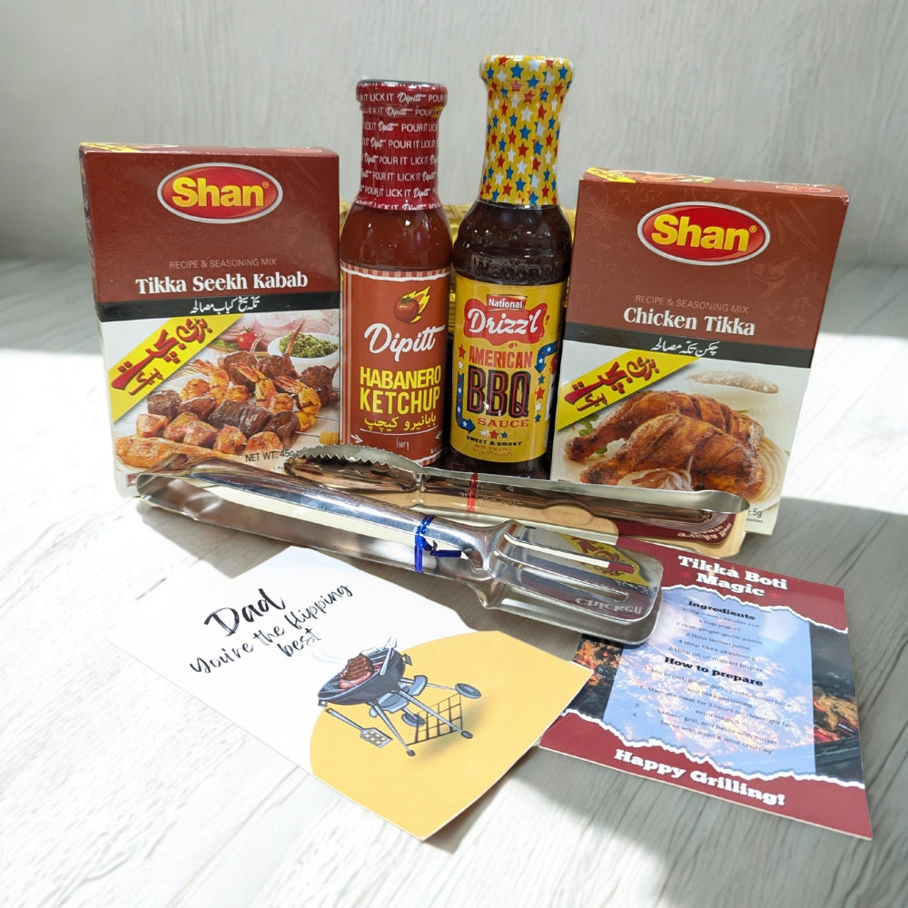 This Eid, gift Dad the ultimate grill master’s kit and watch him turn the heat into BBQ flames! Featuring Shan Chicken Tikka Masala and Tikka Seekh Masala for bold, authentic flavours, fiery Dipitt Habanero Ketchup, and smoky National Drizzl BBQ Sauce to add that perfect kick. Two BBQ tongs and a recipe card make grilling effortless, while the cheeky “Dad! You’re the flipping best” keepsake reminds him how much he’s loved. Celebrate Dad’s flair for flavour with this festive, flavour-packed set.