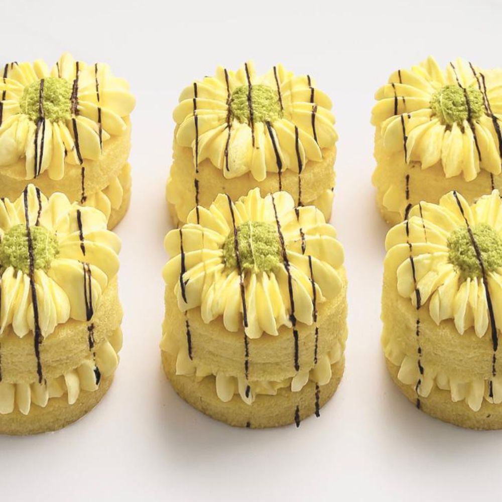 A rich delight layered with pistachio cream and buttery kunafa, topped with smooth buttercream and finished with a drizzle of decadent chocolate — a perfect fusion of flavor and texture.