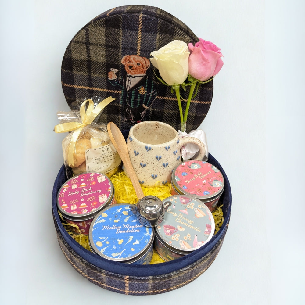 For the man who’s always doing everything for everyone, here’s a little something just for him. This premium round blue and green checkered leather box is a gentle invitation to pause—whether it’s an early morning moment or a quiet evening unwind. With calming teas, a heartfelt mug, and a few thoughtful touches, it’s the perfect way to say, “Take a moment—you deserve it.”