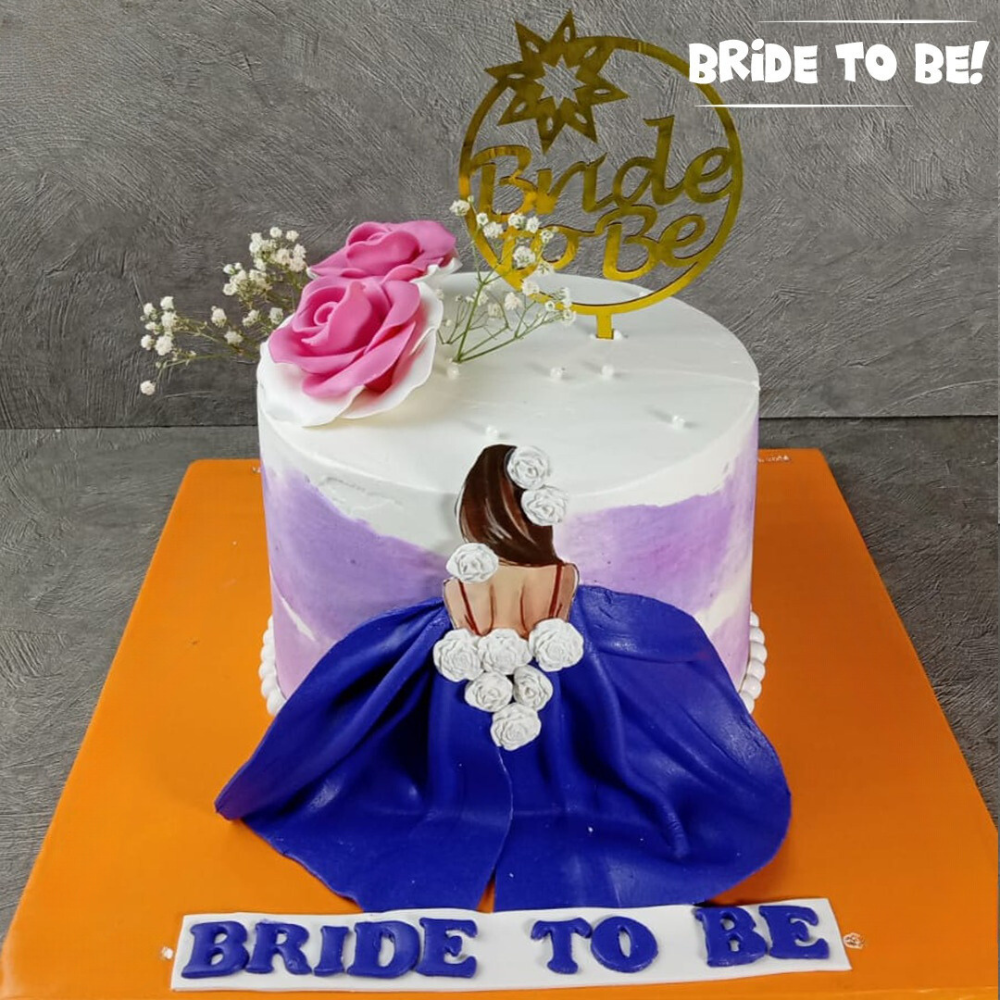 Bride to Be Cake in Purple & Blue Theme With Topper - Cream + Fondant - 3lbs