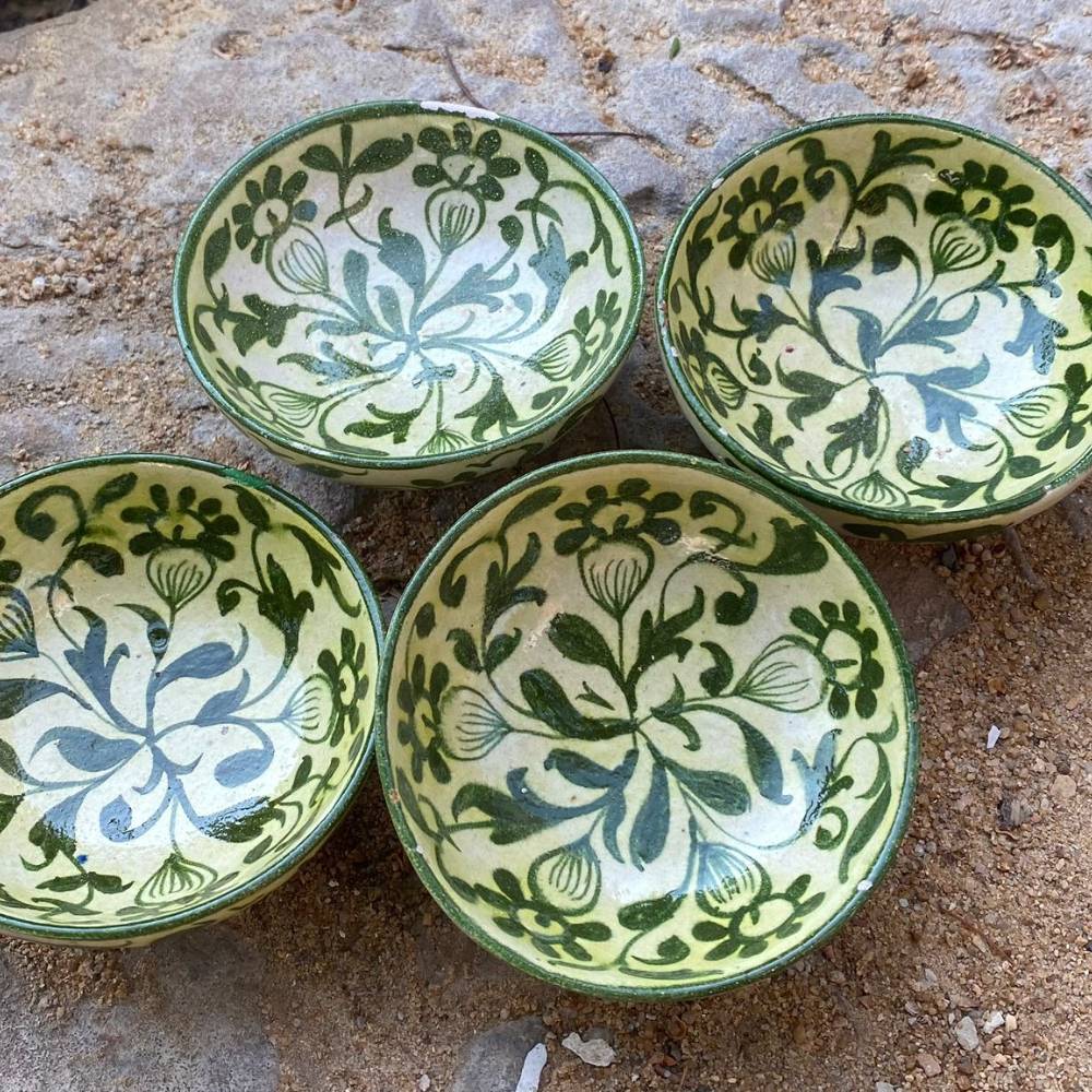 A handcrafted piyala in a classic blue and white combination, made by the Kashigars of Hala, Sindh. This single, finely detailed piece embodies the rich tradition of handmade pottery.