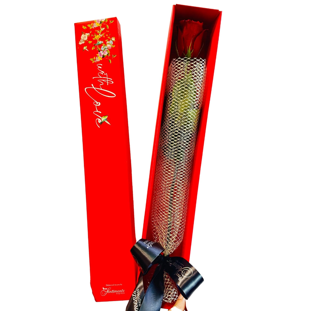 Single Imported Long Stem Rose in With Love Box + Azbah by J.