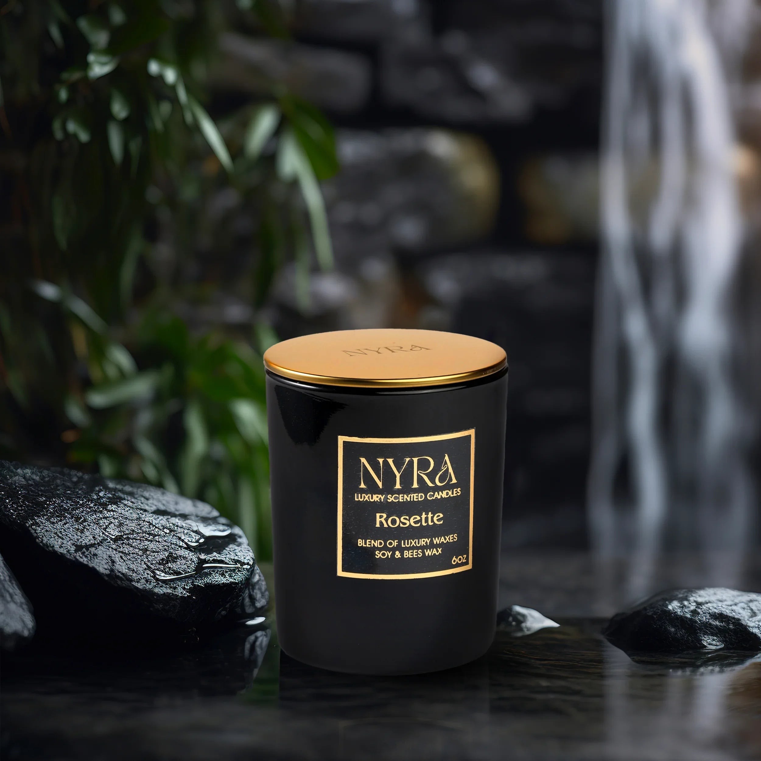 Blend of luxury bees & soy wax, double wick, smoke-less cotton wck, gold lid black jar,6 oz candle
