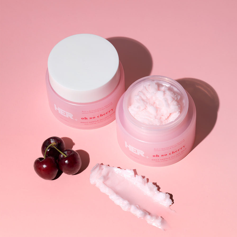Pair to Care: Start your double cleanse routine with our oil-based balm "oh so cherry" then pair it up with our water-based "balance bestie" for that squeeeeaky clean glow.