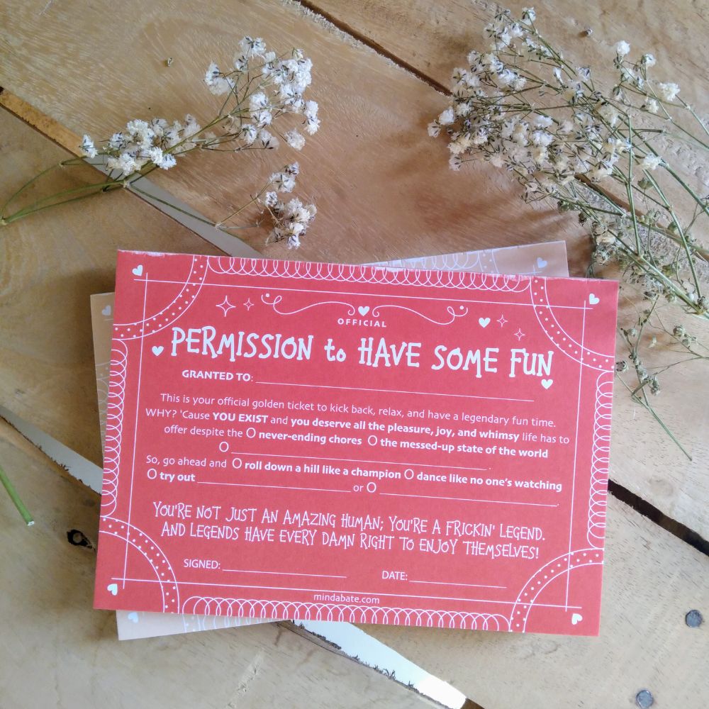 Feeling tired of adulting? Need a break from the seriousness of life? Well, guess what? You've stumbled upon the solution you never knew you needed! The Permission to Have Some Fun Notepad is packed with pure joy. Each slip grants you official permission to lighten up, have a blast, and embrace your inner child. Share them with your friends or keep them all to yourself—it's