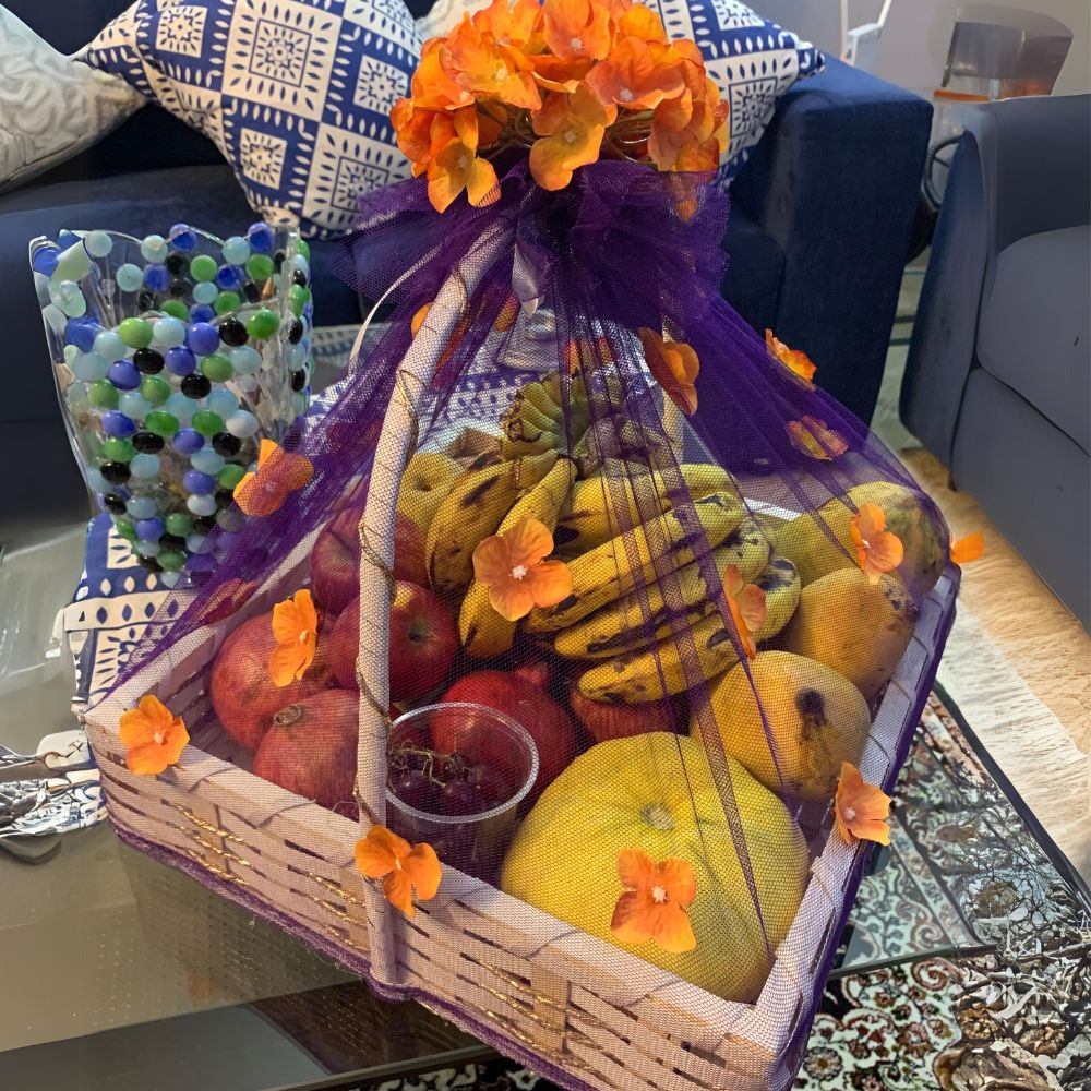 Indulge in a vibrant selection of fresh, juicy fruits beautifully arranged in a striking purple basket. This bountiful assortment offers a delightful mix of flavors and colors, making it the perfect gift for any occasion. Savor the taste of nature's finest in a stylish presentation.