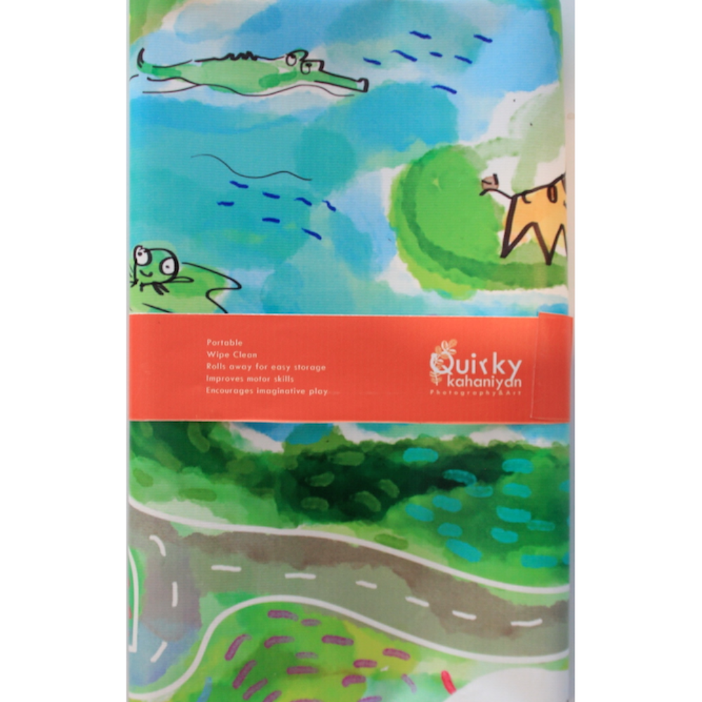 The 'Roadmap to Rishtedar' is a multi purpose play mat for kids aged 0-7. The playful design features 7 places namely 'Hamara Ghar', 'Nani ka Ghar', 'Dadi ka Ghar', 'Halwai', 'Dost', 'School' and 'Chirya Ghar' that help foster a sense of community and connection with relatives living near and far. The bright and cheery illustrations encourage imaginative play and help improve motor skills as kids zip zoom to and fro on the map with their toys.