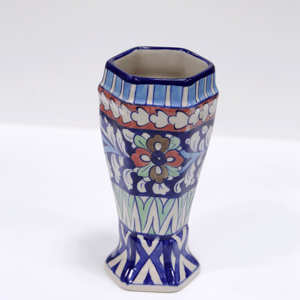 Bring the beauty of Multani pottery into your home with this exquisite vase. With traditional craftsmanship, each unique piece brings local flair and charm to any décor. Handmade from Multan, each multani pottery vase is one of a kind. It includes a free greeting card and free delivery. Note: the design and color may vary, but the shape will remain the same.