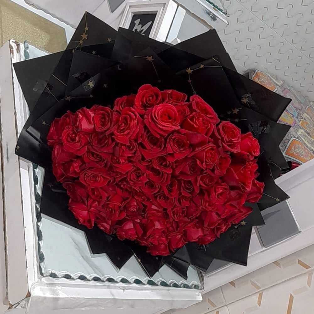 Make a grand gesture with this breathtaking bouquet of 100 stunning local roses. Each bloom is carefully selected for its beauty and freshness, creating an unforgettable gift for your loved one or a remarkable centerpiece for any occasion.